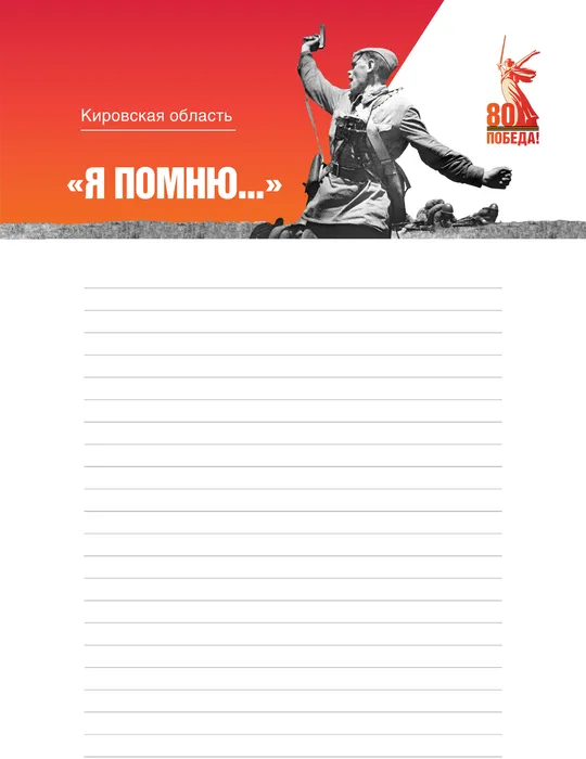 В учреждениях культуры и образования сферы культуры Кировской области будут размещены листы акции с символикой 80-летия Победы. На этих бланках каждый участник может вписать имя своего близкого, родственника — участника Великой Отечественной войны – и информацию о нем (воинское звание, место и период службы в годы войны, награды, подвиги и др.).