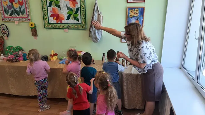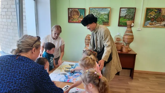 Ребята узнали о мастерах народного творчества, хранящих умения работы с древесными и тканевыми материалами, побывали на выставке "Летний вернисаж", познакомились с почтальоном Печкиным, показавшим из каких сучков и прутьев возможно изготовление различных изделий.