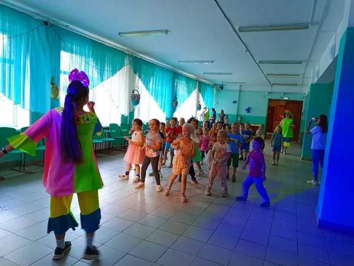 Дети с большим удовольствием танцевали, дурачились и зажигали под современные детские хиты. Клоунессы Веснушка и Кнопочка првовели для ребят конкурсы, игры и флешмобы. Танцевально-игровая программа подарила ребятам хорошее настроение и море позитива.