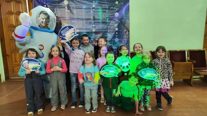 Ребята начальной школы и детского сада отметили День космонавтики веселой программой "Школа юных космонавтов"